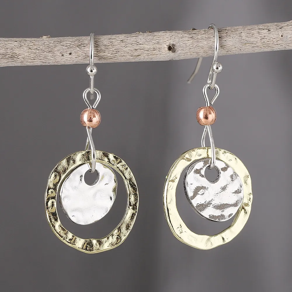 Retro Simplicity Coin Ring Overlapping Two-tone Earrings