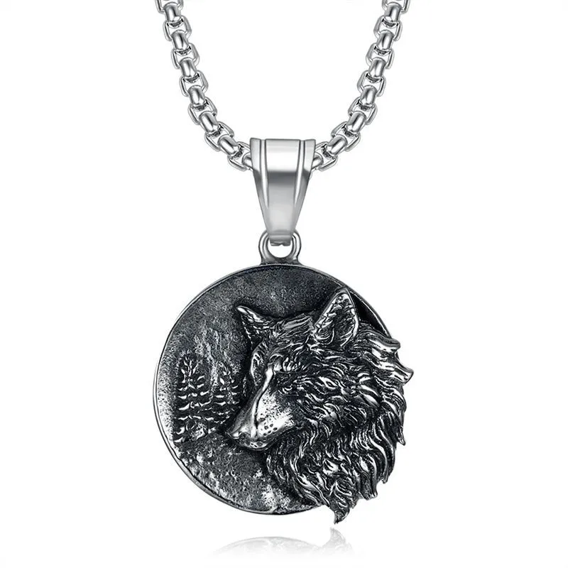 Retro Titanium Steel Viking Wolf Head Pendant
