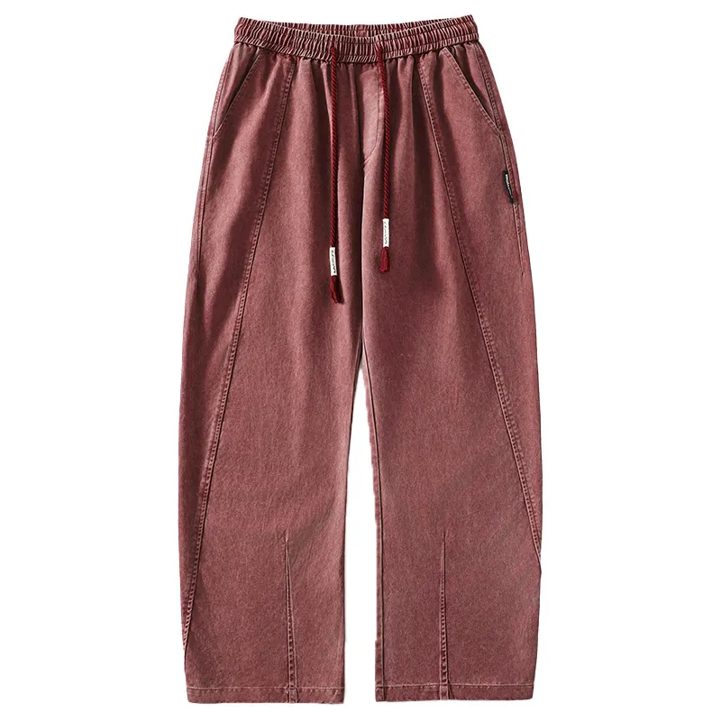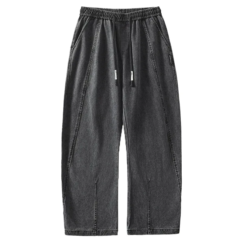 Retro Washed Distressed Drawstring Elastic Waist Jeans