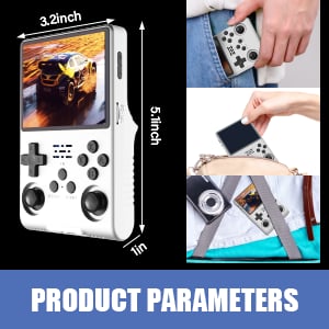 The R40S Pro is a high-performance retro video game console with 6000 classic games pre-installed and support for over 11 emulators. It features a 3.5-inch IPS screen with a high resolution of 640*480 for more realistic screen detail, and a 2000mAh rechargeable battery that provides up to 10 hours of play time, making it perfect for gaming on the go.