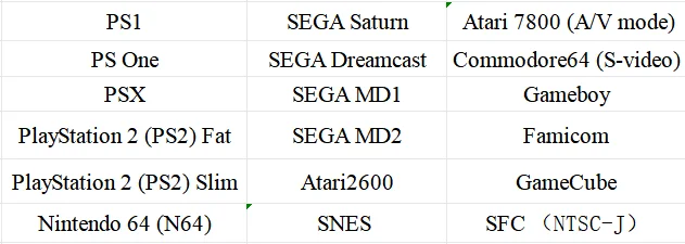 RetroScaler2x Supported Console (but not limited to):