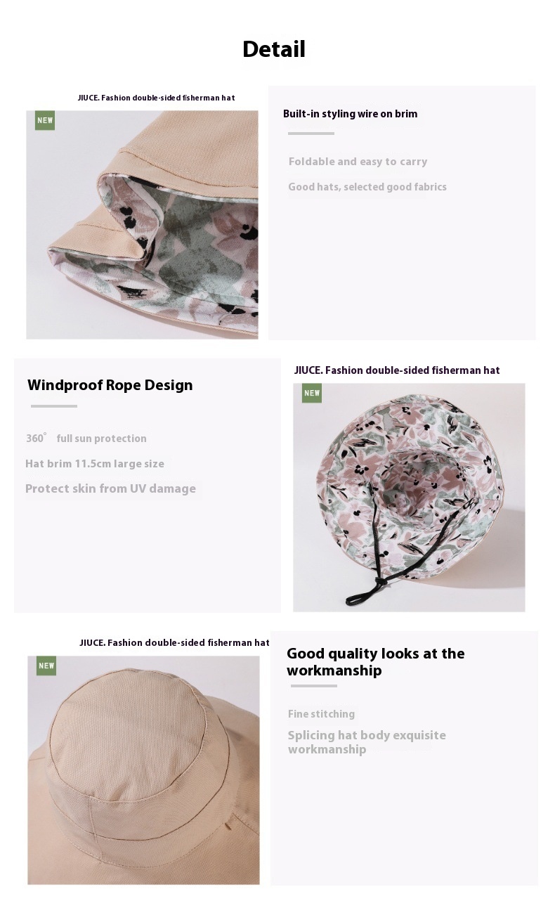 Reversible Fisherman Hat Printed Big Brim Sun-proof