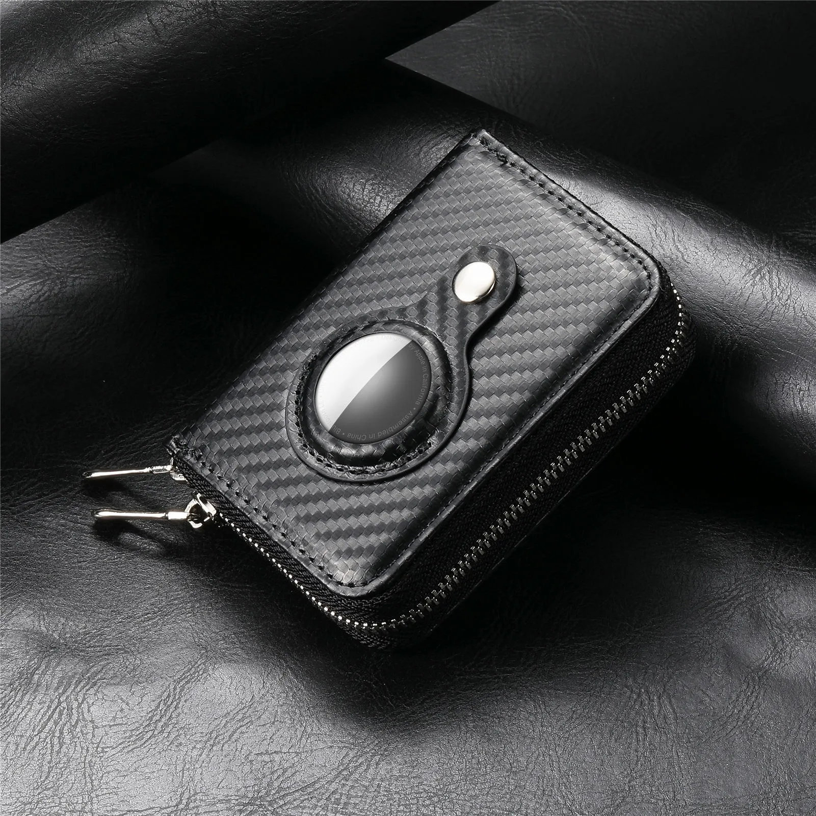 RFID Double Zip Wallet Set - Sleek Carbon Fiber PU Storage Card Sleeve