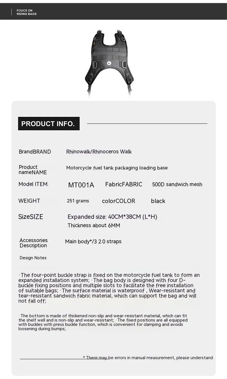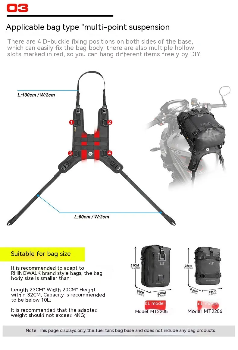 Rhino Walk Motorcycle Fuel Tank Vest Mount Package Mount Base DIY Motorcycle Plug-in System