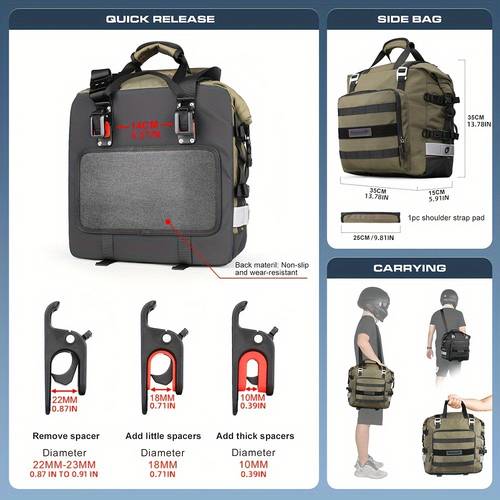 Quick-Release Detachable Design: The quick-release feature allows for easy detachment of the saddlebag when needed,