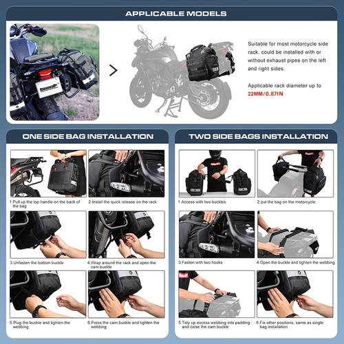 Customizable Fit: The adjustable straps ensure that the bag stays securely attached to your motorcycle, providing stability