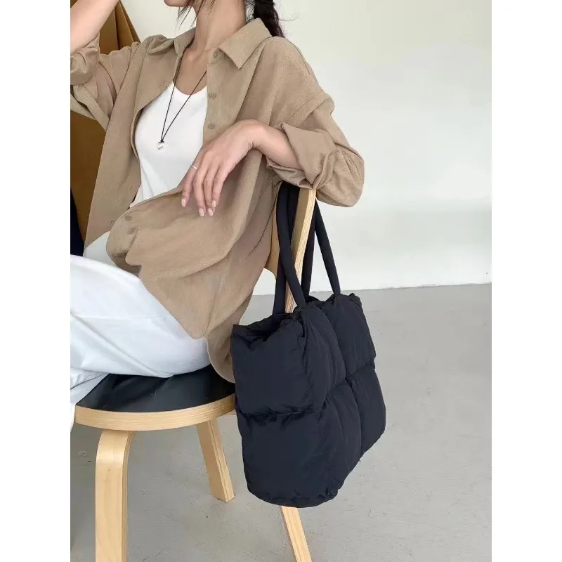 Rhombic Quilted Plush Cotton Pillow Down Handbag