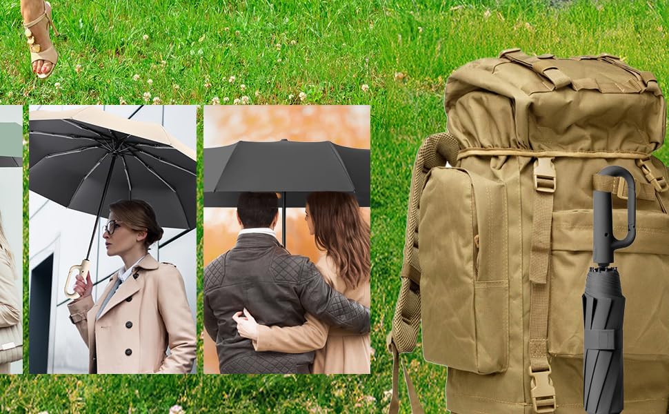 Folding design, easy to carry. The rainy surface will be inside when the umbrella is closed, so you won't have to worry about getting wet even if you touch the umbrella (the dry surface is outside). They are stored inside, so clothes and luggage will not get wet and the people around you not be disturbed.
