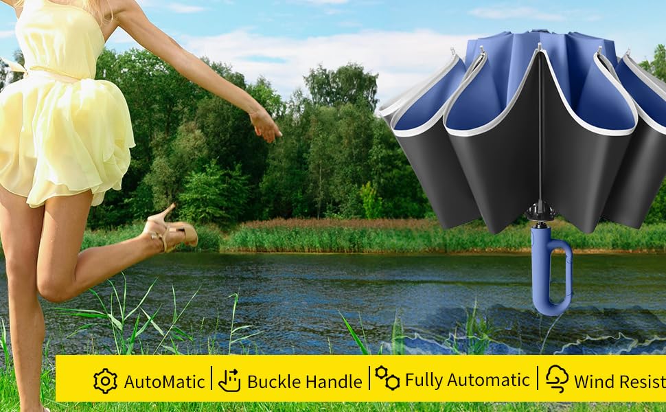 Ring buckle umbrella, Reflective Safety Strip, Sturdy Windproof, Travel Portable