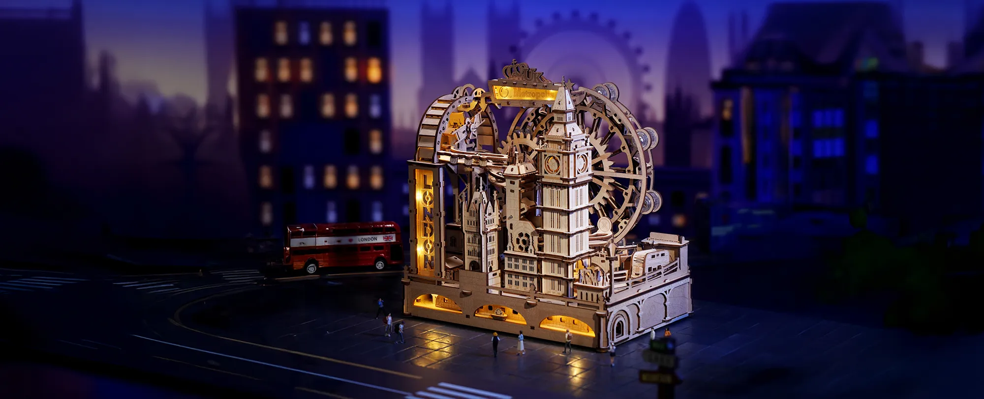 More than just a model, this mechanical puzzle features a functional marble track running through four iconic stations: London Eye, Big Ben,