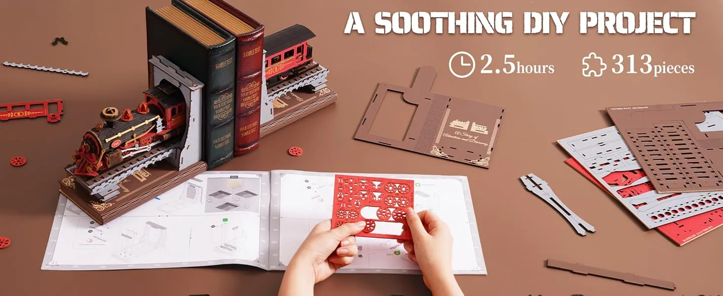 The ROBOTIME Century Train Bookend Kit is made from premium wooden materials, ensuring that the pieces are durable and precision-cut for easy assembly. The wooden pieces have a natural, smooth finish, allowing you to enjoy both the construction process and the final result. The sturdy construction ensures that the bookend remains stable and durable for years, while the natural texture of the wood adds an elegant touch to your decor.