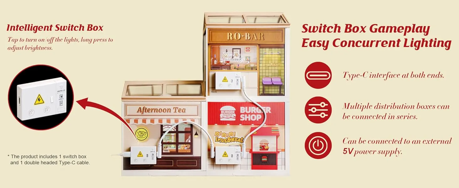 To get started, organize all pieces and follow the detailed instructions provided. Assemble each element, from the burger counter to the tiny tables and chairs, creating a lively burger shop scene. Install the LED lighting to add a cozy glow, then place the completed model in a display area where it can be enjoyed as a unique decor piece.