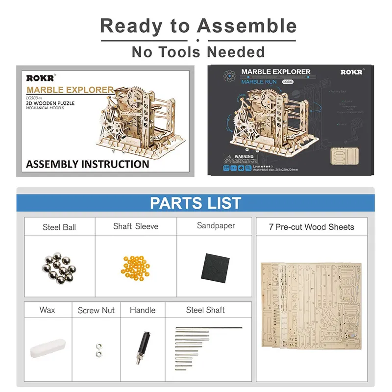 Unleash your creativity and enjoy the satisfaction of building with the Robotime ROKR Marble Run Maze 3D Wooden Puzzle Coaster Model Kit. Whether for yourself, your family, or as a thoughtful gift, this kit offers endless fun and learning.