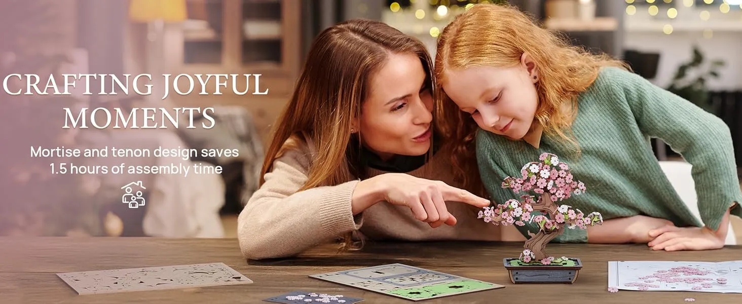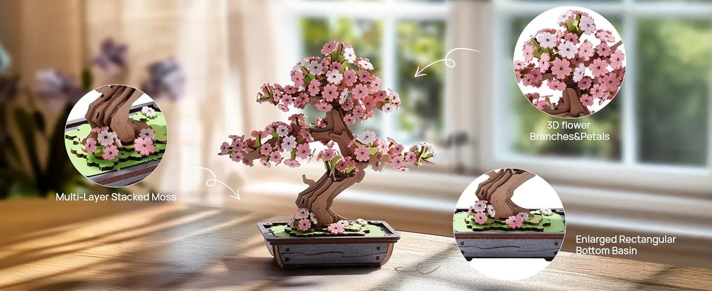 Crafted from high-quality wood, the Rolife 3D Puzzle Sakura Bonsai is designed to provide a sturdy and durable structure. The wooden pieces are precision-cut, ensuring a smooth, easy-to-assemble experience. This high-quality material not only adds to the aesthetic appeal of the final product but also guarantees longevity, allowing your bonsai tree to be a lasting addition to your decor for years to come.