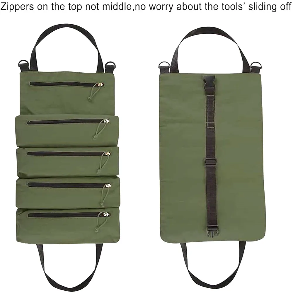 - Keep your Tools & Accessories Organized and Carry Them in a Small Tool Roll – Hang The Roll Up Tool Bag Organizer in Your Car Garage or Work shop . Carry this Tool Rool with you as a Mechanic Bag or as a small roll up tool bag for truck Tool Bag