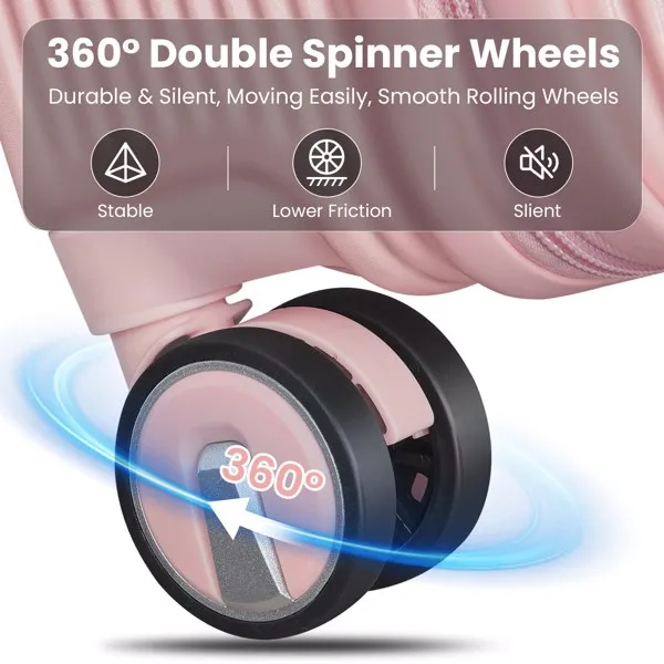 【360°Double Wheels】The luggage rollers maneuver very smoothly whether the wheels are on the ground or airport floors. Reduced friction and shock absorption.