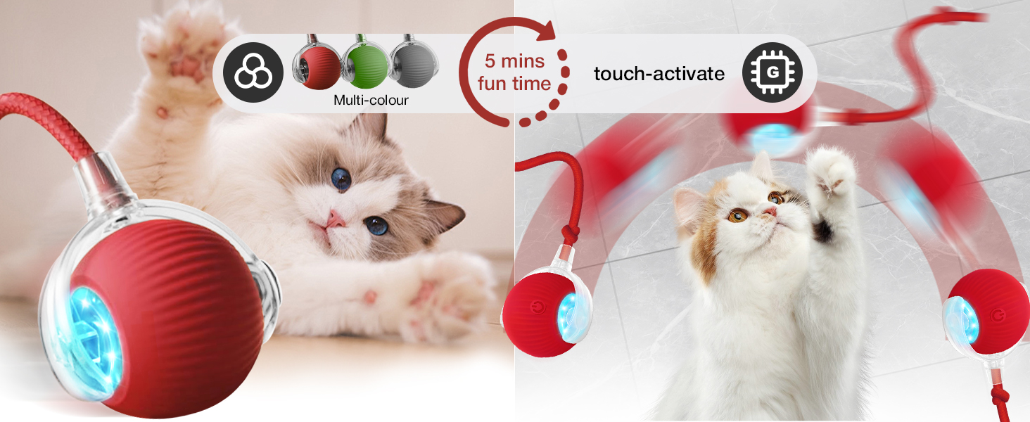 - 【Endless Interactive Fun】Keep your pet engaged and active with the interactive cat ball! This ball rolls at the press of a button, sparking your dog or cat’s natural instincts to chase and play, ensuring hours of stimulating entertainment