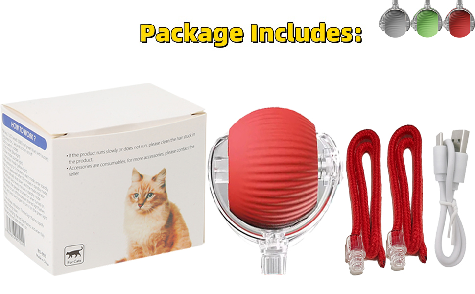 - Quick Charging:The interactive cat toy can support a longer game time.The Electric Ball has built-in fast-charging technology that provides up to 4 hours of fun in just 30 minutes.