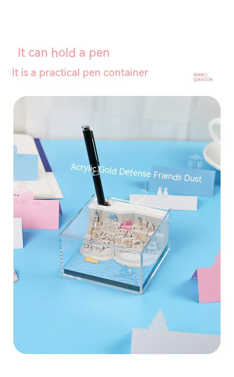 Capture the charm and beauty of Santorini with the Romantic Santorini 3D Notepad Paper Carving Building Model Lighting Decoration. This exquisite piece blends the timeless allure of Santorini’s iconic architecture with a creative and modern twist. Designed as a paper carving model, this unique decoration features intricately cut details that recreate the iconic white-washed buildings, narrow streets, and blue domed roofs of Santorini. The added lighting effect creates a soft, romantic ambiance, perfect for any space in need of a touch of elegance and warmth.