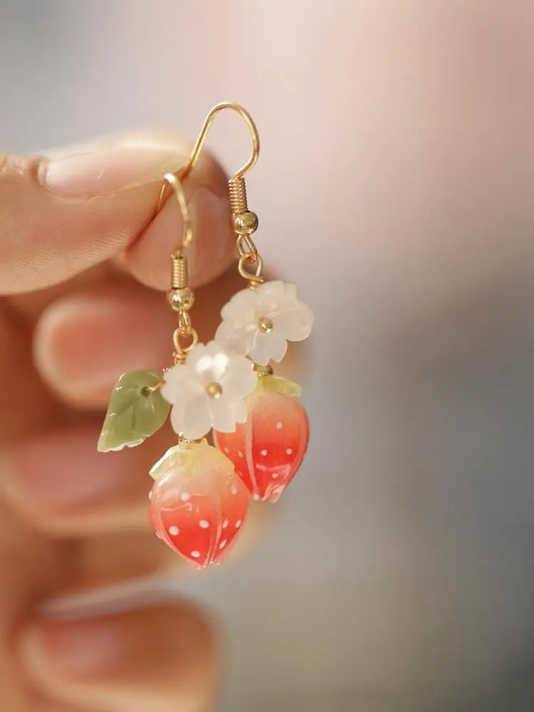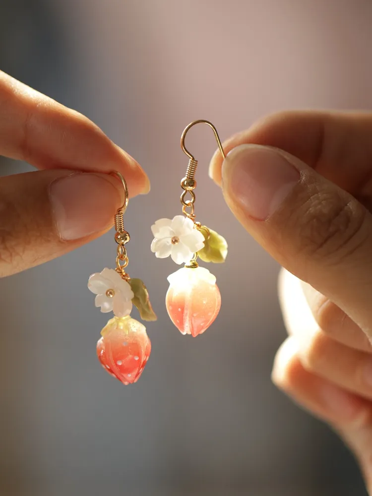 Rose Epoxy Long Earrings Handmade