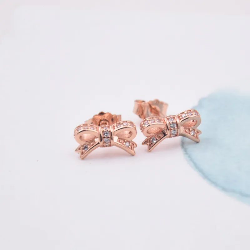 Rose gold bow stud earrings