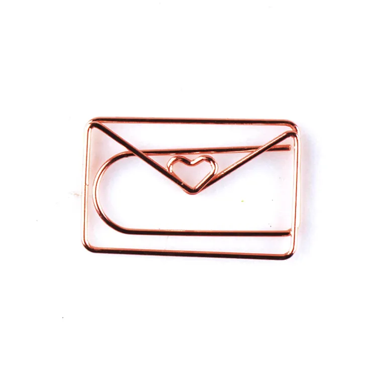 Crafted from premium metal and coated in a sleek rose gold finish, this paper clip not only adds a touch of class to your papers but also ensures durability for long-term use. The envelope shape is intricately designed, providing a beautiful visual appeal while still maintaining its strength to securely hold your papers in place. Whether you're marking pages in a planner, keeping notes organized, or adding a personal touch to your journal, this paper clip is a must-have accessory.