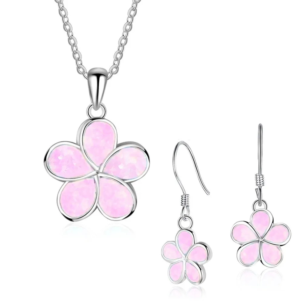 Rose Opal Pendant Earrings Set