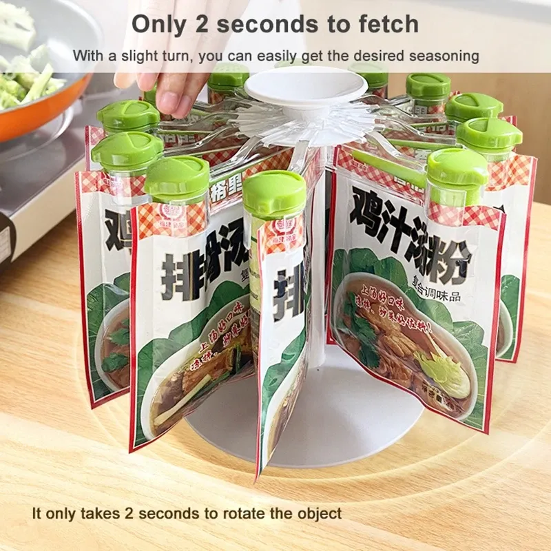 The Rotary Rack Kitchen Spice Bag Storage Rack is an essential kitchen tool that helps keep your spices organized, accessible, and fresh. Its rotating design, combined with ample storage space and durability, ensures that you can easily find and use your spices without cluttering your kitchen. Whether you have limited space or simply want to keep your spices neatly arranged, this storage rack provides both functionality and style, making it the ideal addition to your kitchen organization system.