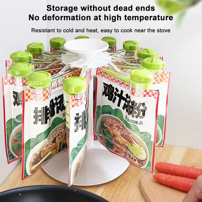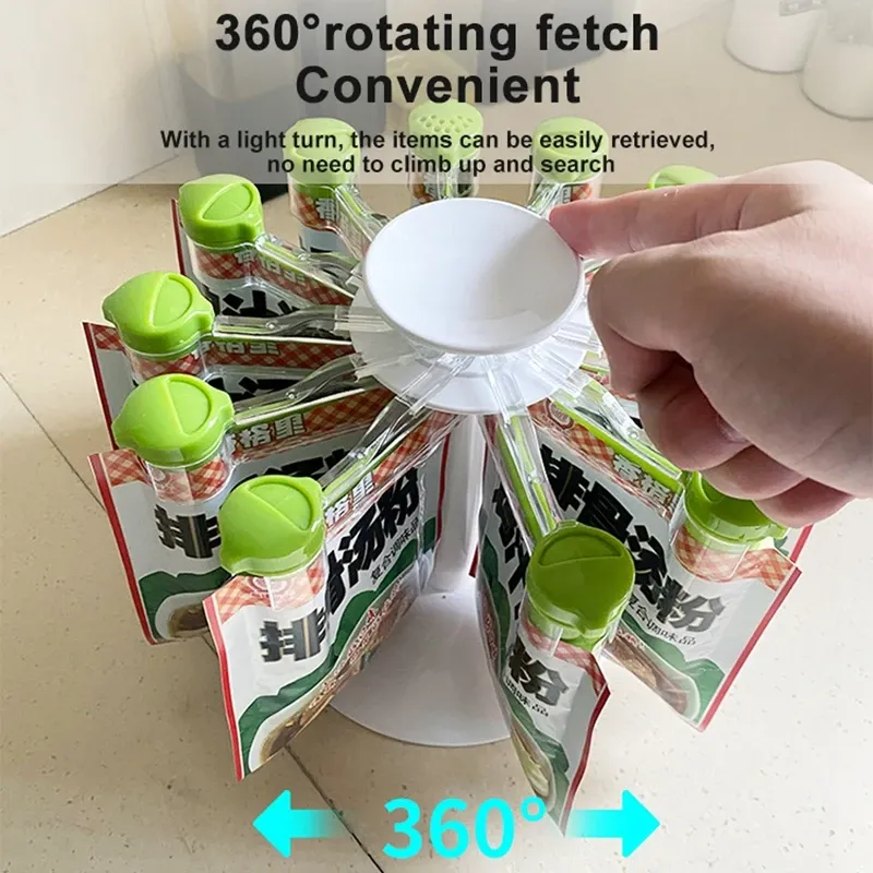If you’re looking for an efficient, stylish, and durable way to store your spices, the Rotary Rack Kitchen Spice Bag Storage Rack is the perfect solution.