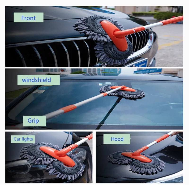 ROTATING CAR MOP is a vehicle cleaning tool featuring a rotating head that allows smooth, even contact across painted surfaces, glass, wheels, and trims. The rotating mechanism enables the mop to glide naturally over curves and contours, helping lift dirt, dust, and grime without aggressive scrubbing. This reduces the risk of swirl marks while improving overall cleaning efficiency.