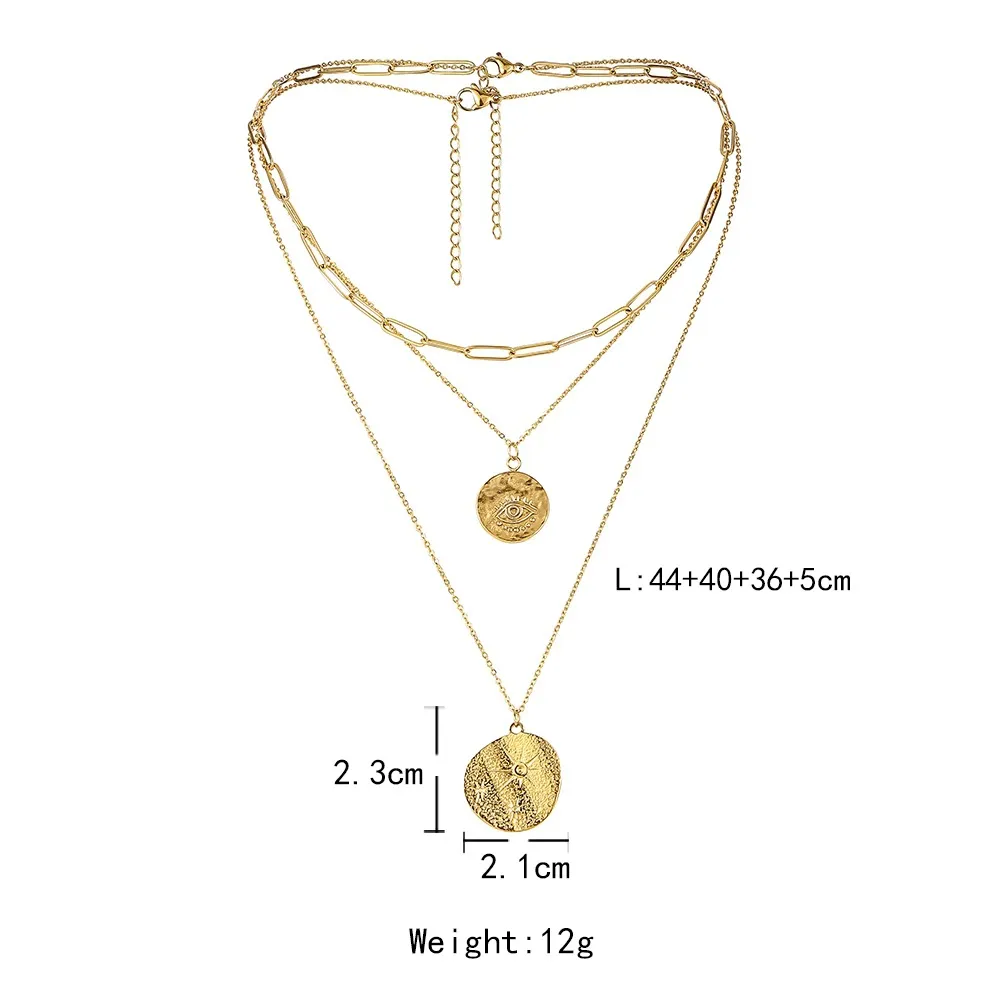 Round Coin Sun Eye Multilayer Pendant