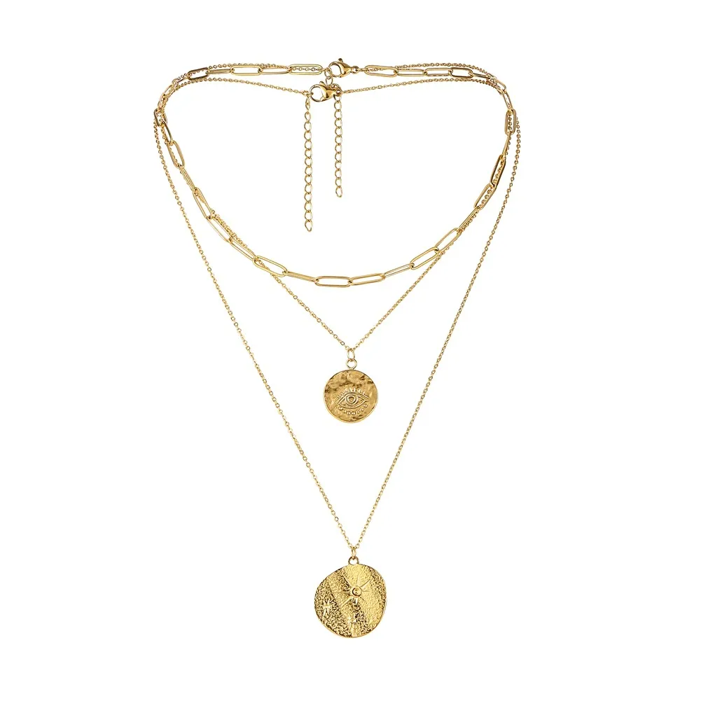 Round Coin Sun Eye Multilayer Pendant
