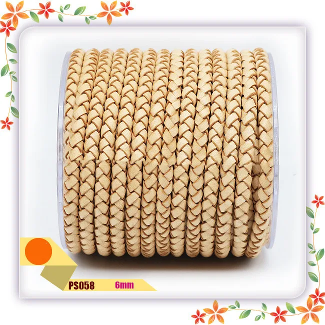1: The 6mm beige leather braiding rope is made of imported raw materials, environment-friendly leather, and the leather braiding rope is