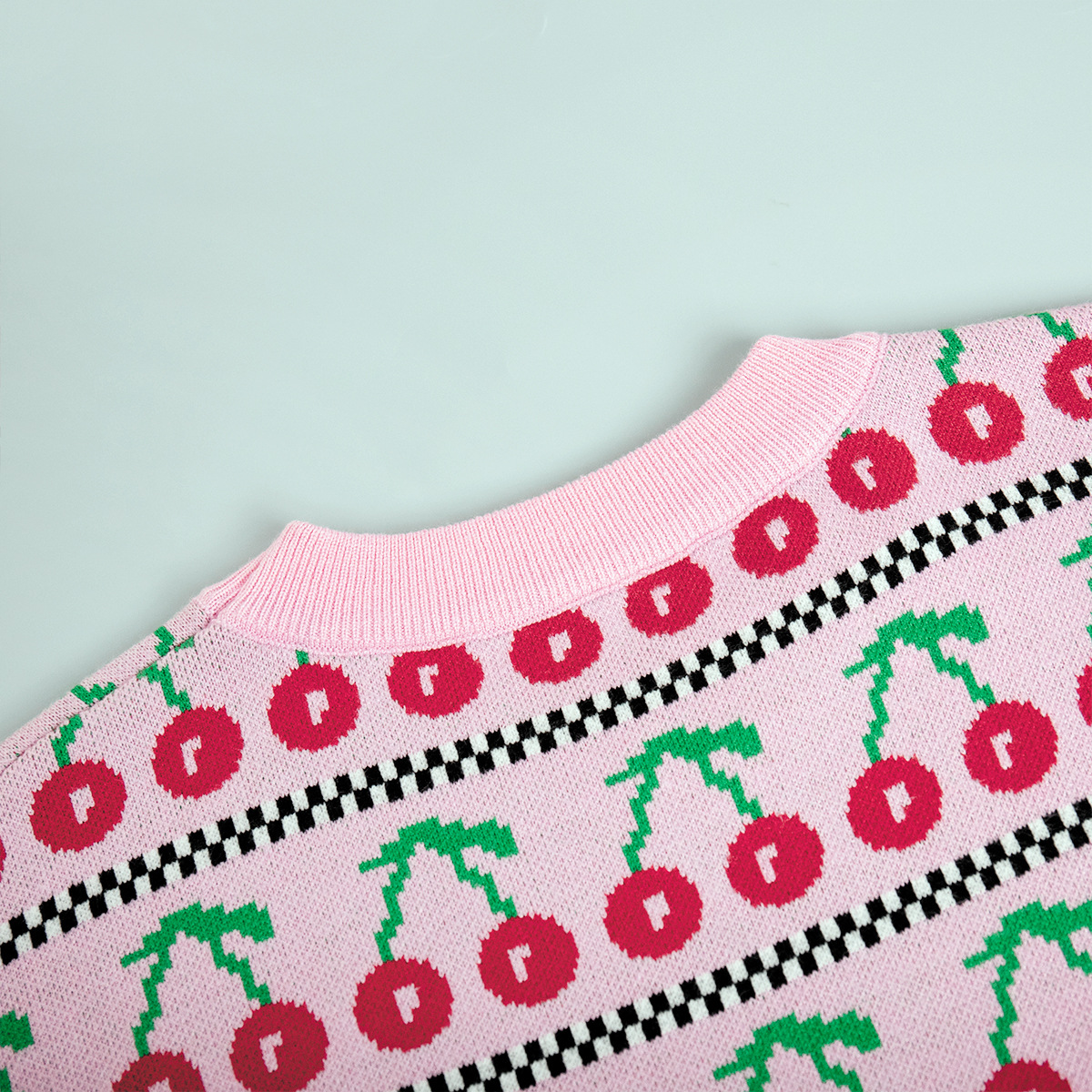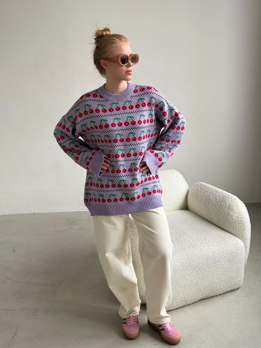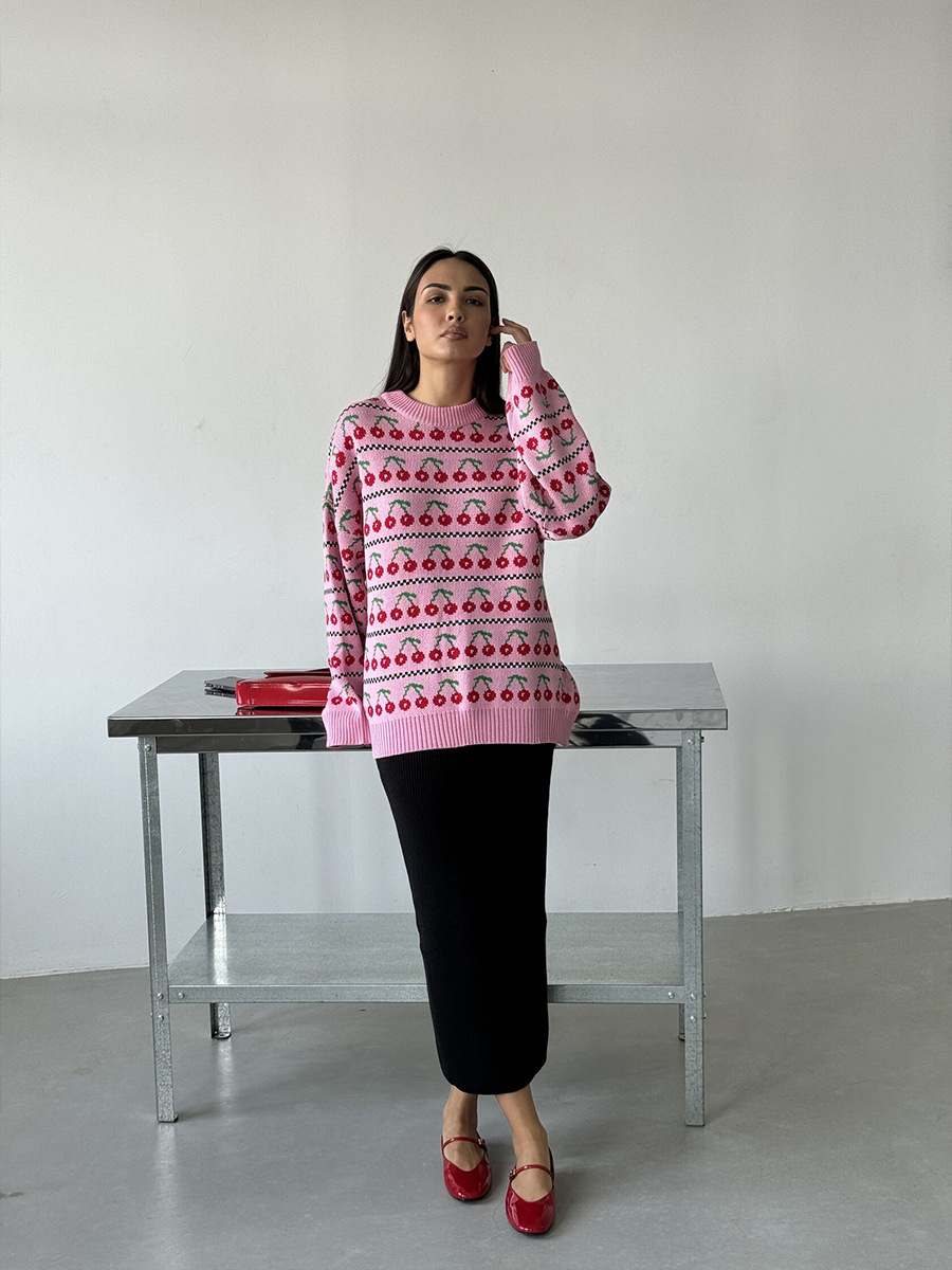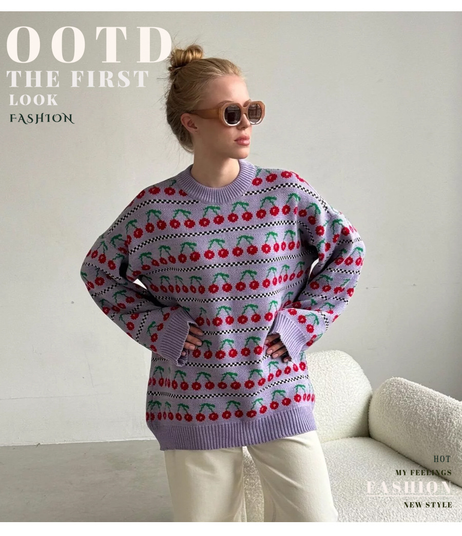 Round Neck Cherry Sweater Mid-length Retro