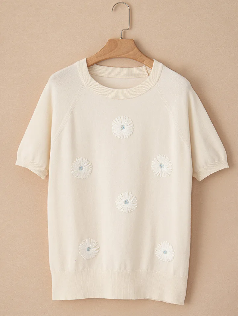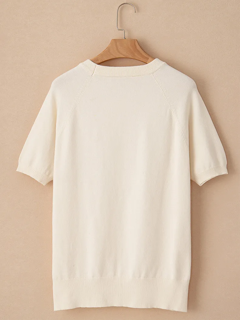 Round Neck Sweater With Short Sleeves Women