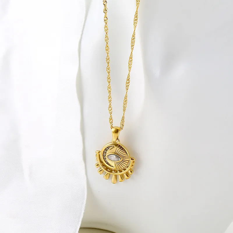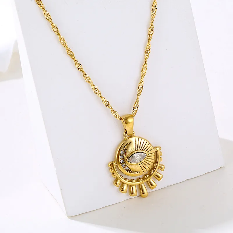 Round Zircon Eye Pendant Necklace