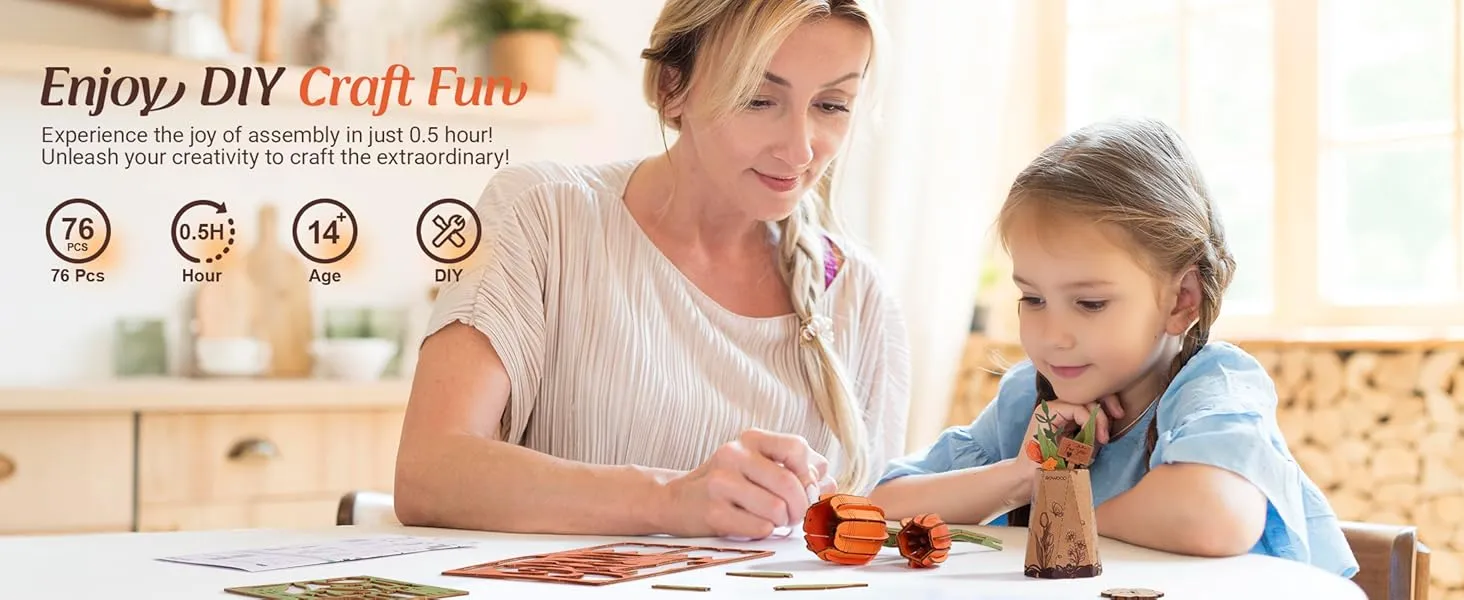 Whether you're looking for a relaxing activity, a way to enhance your living space, or a thoughtful gift idea, the Rowood 3D Puzzle DIY Wooden Flower Kit is a perfect choice for a meaningful, creative project.