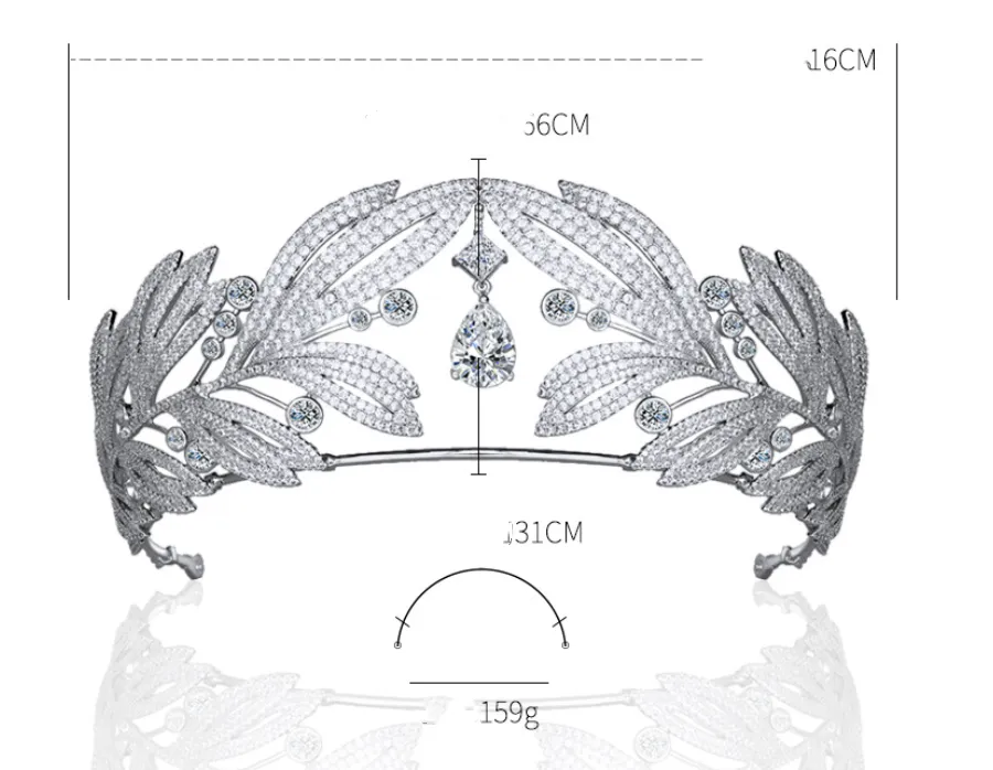 The Royal Vintage Laurel Leaf Big Crown Bridal Zircon Crown features a stunning laurel leaf design, which is historically a symbol of victory, triumph, and honor. In ancient Greece and Rome, laurel wreaths were used to crown victors in athletic contests and military commanders. By incorporating the laurel leaf design, this crown evokes a sense of royalty and accomplishment, adding a symbolic and meaningful touch to your wedding look.