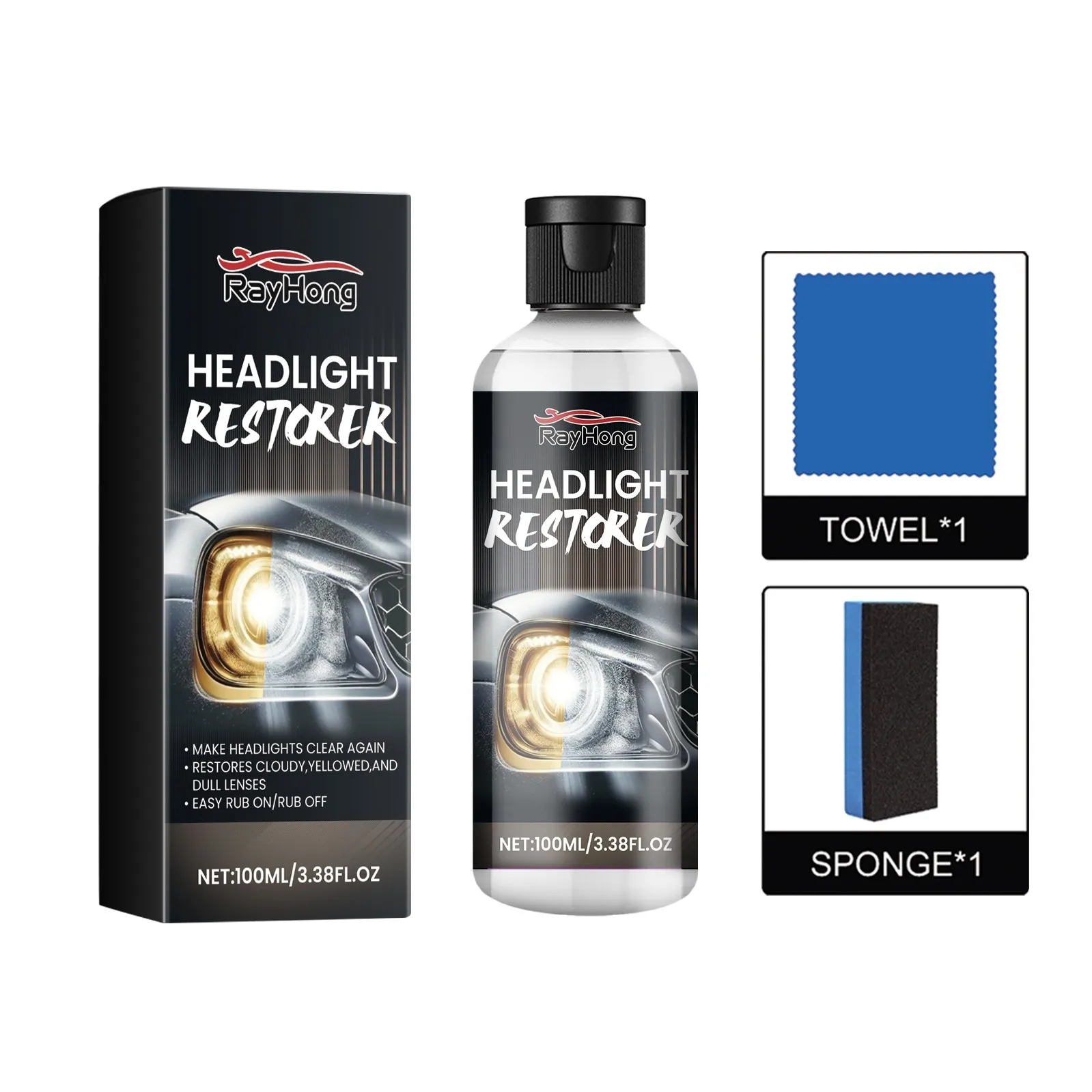 With a simple and easy-to-use formula, this headlight restorer removes oxidation, dirt, and grime, leaving your headlights crystal-clear. It not only improves the look of your car but also boosts your driving safety by ensuring optimal light output. Whether you're preparing your car for a road trip or simply looking to maintain its appearance, our Car Headlight Restorer provides a cost-effective and efficient solution to extend the life of your headlights.