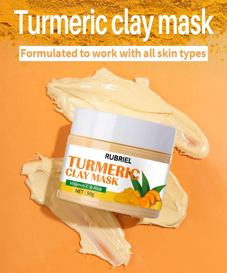 Turmeric clay mask, moisturizing face mask, brightening clay mask, anti-inflammatory face mask, nourishing facial mask, detoxifying mask, turmeric skincare, hydrating clay mask, facial mask for skin glow, Rubriel clay mask