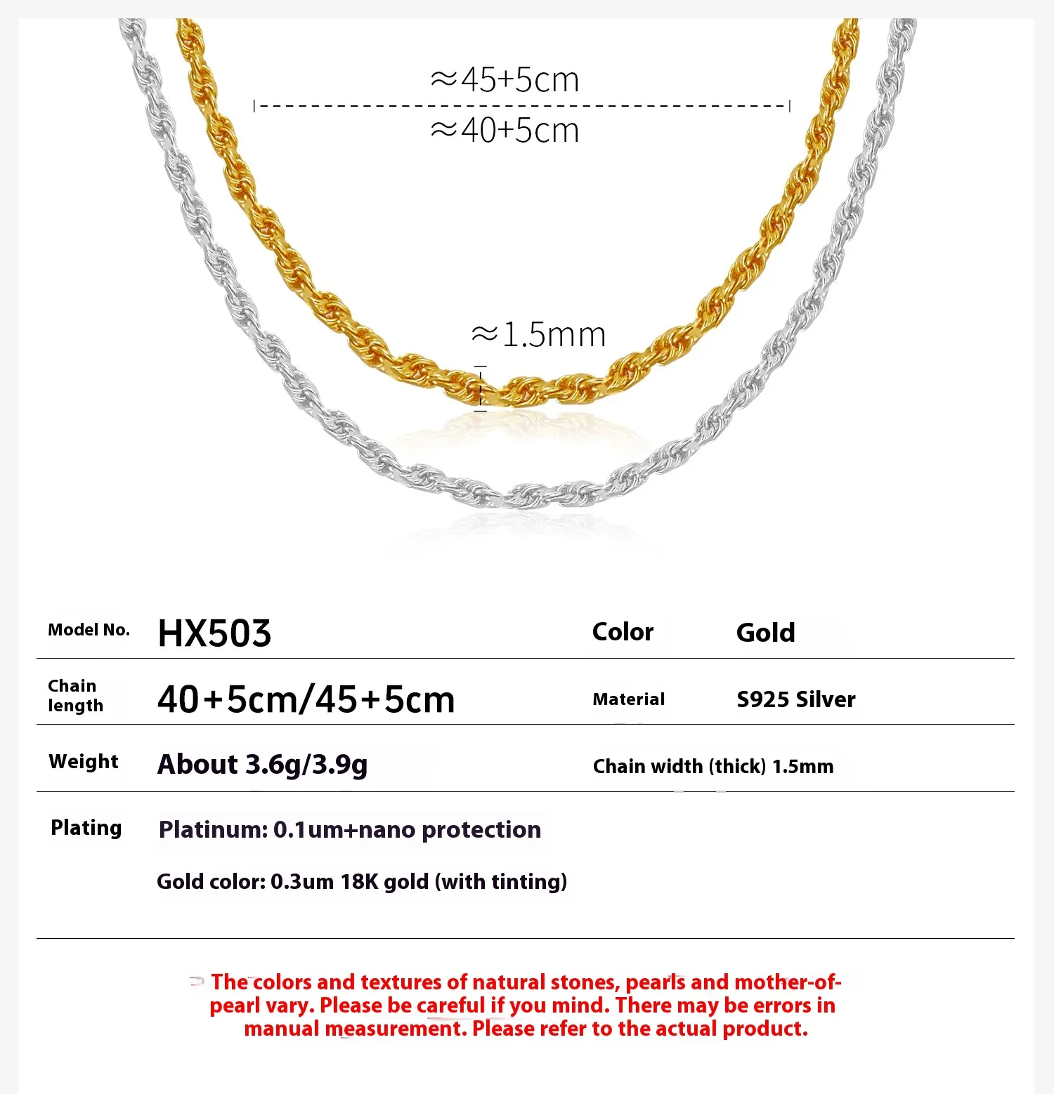 Color: 45 5cm gold color, 45 5cm Platinum