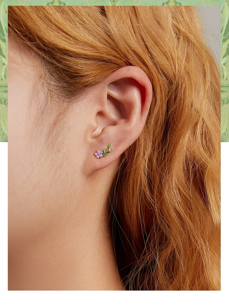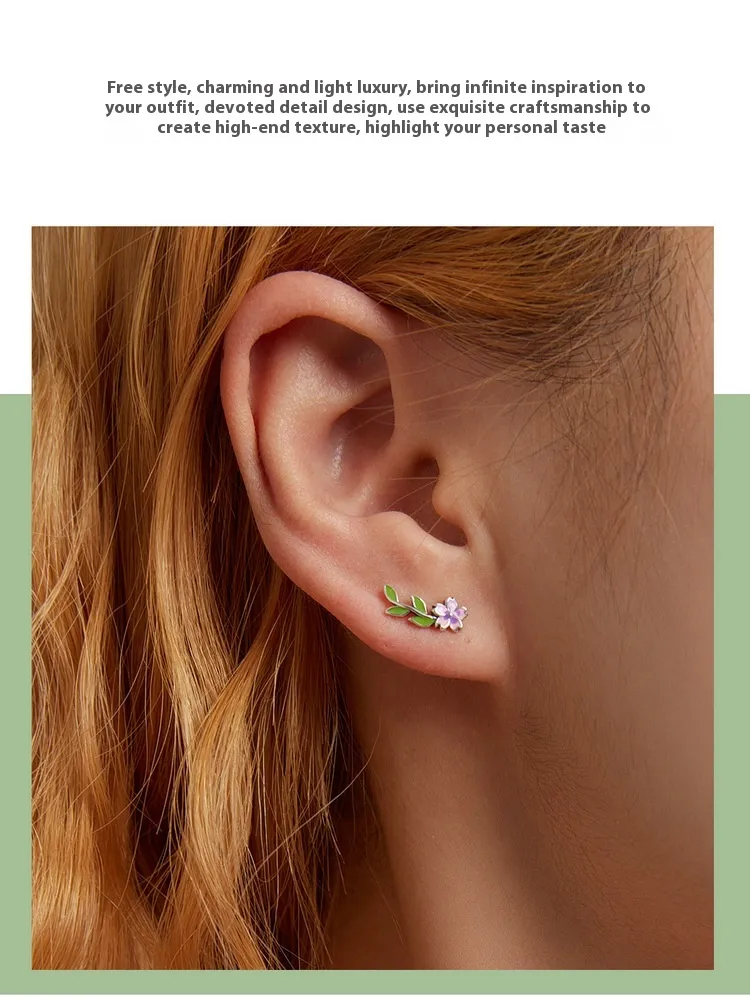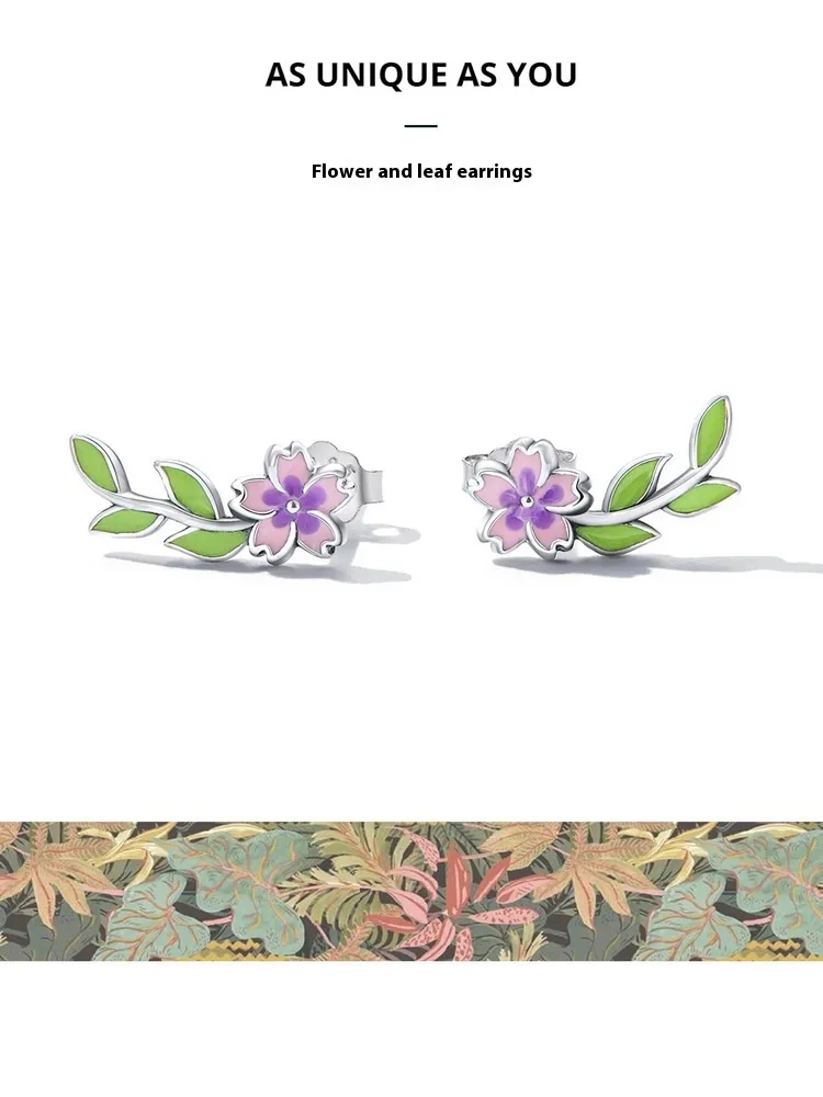 S925 Silver Jewelry Personalized Fashion Flower Leaves Sterling Silver Stud Earrings