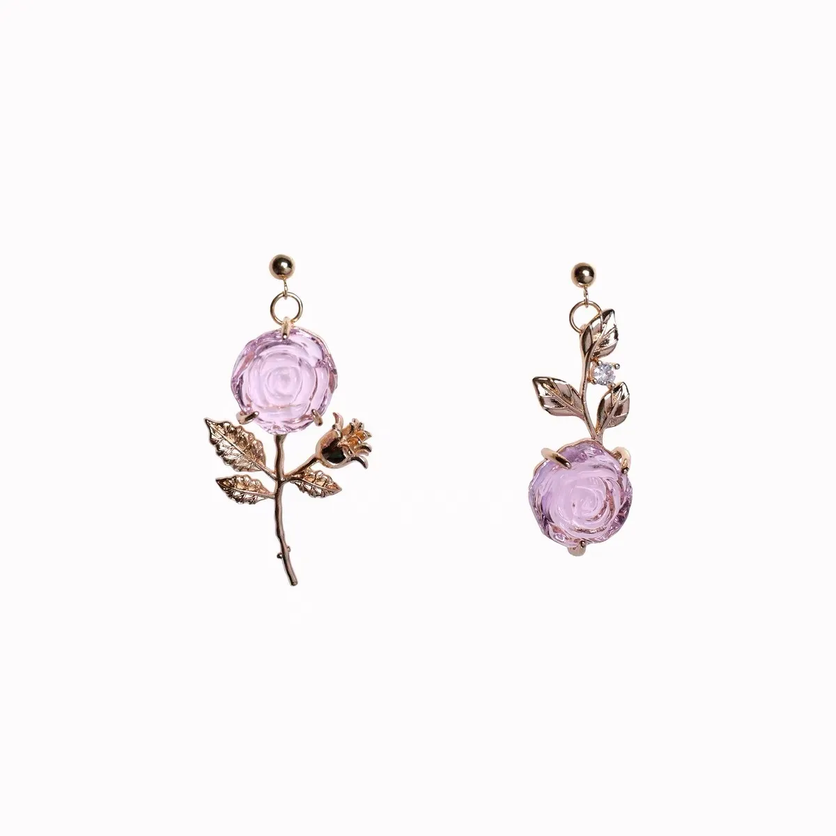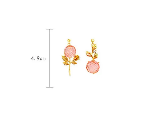 S925 Silver Pin Nightingale And Rose Stunning Rose Asymmetrical Earrings