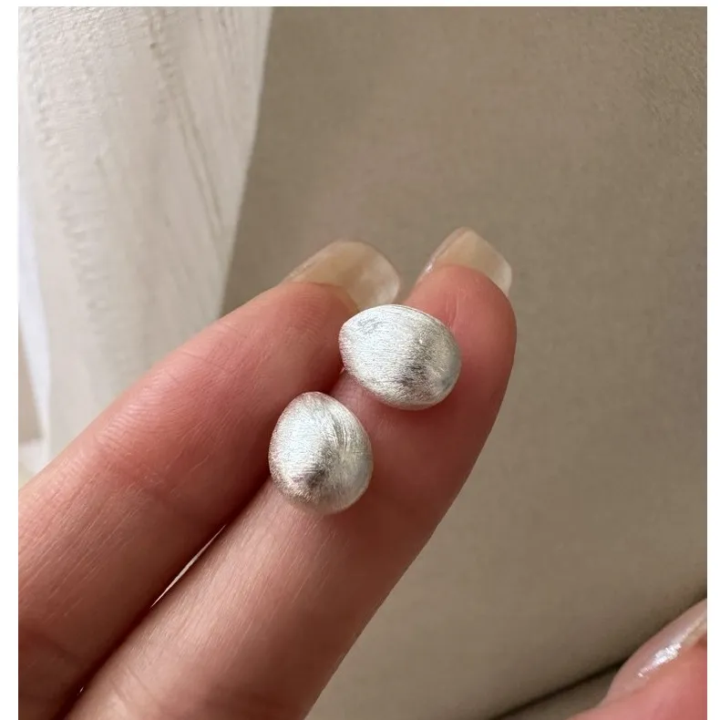 The brushed texture gives these earrings a soft, matte appearance, setting them apart from traditional polished silver pieces. This subtle finish offers a contemporary edge while maintaining a timeless elegance.