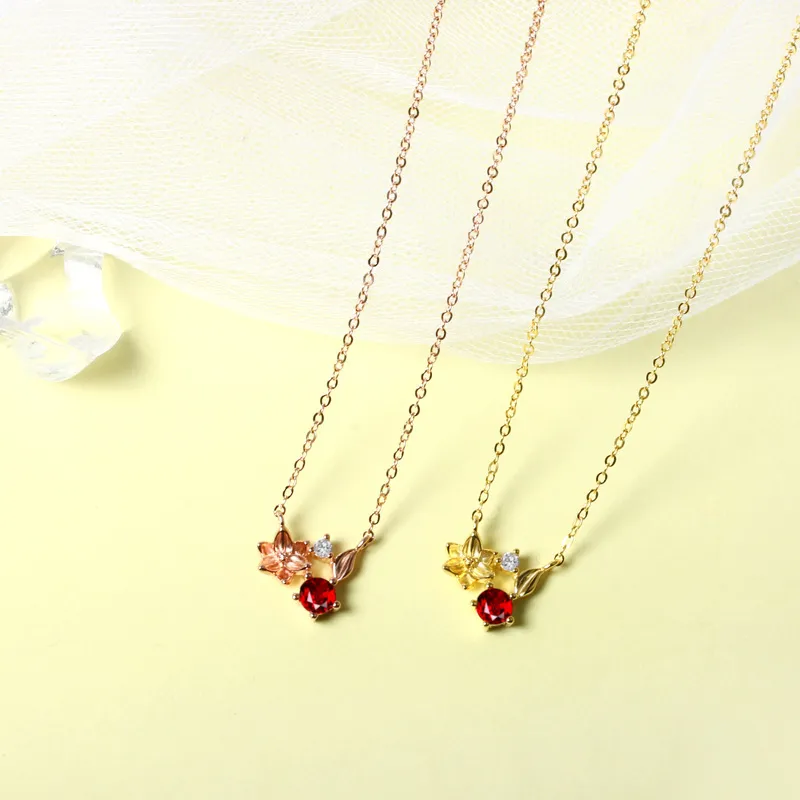S925 Sterling Silver Garnet Flower Pendant
