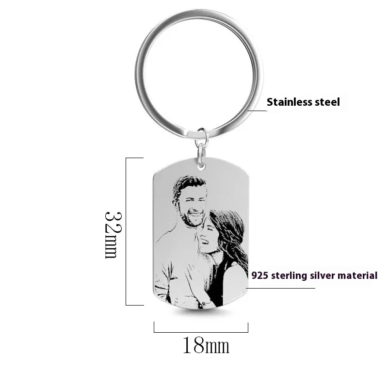 S925 Sterling Silver Keychain Personalized Photo Pattern Pendant