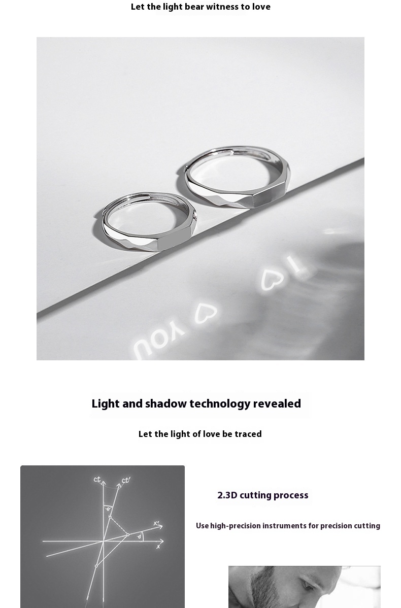 S925 Sterling Silver Rings By Light Reflect Show Surprise Love Pattern Surface Hidden New Jewelry Romantic Party Gift Wedding Engagement