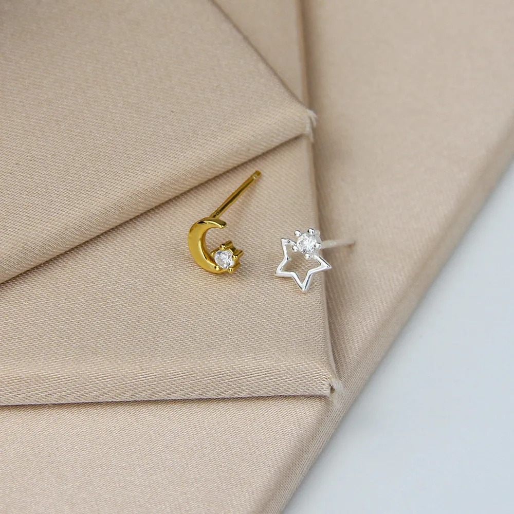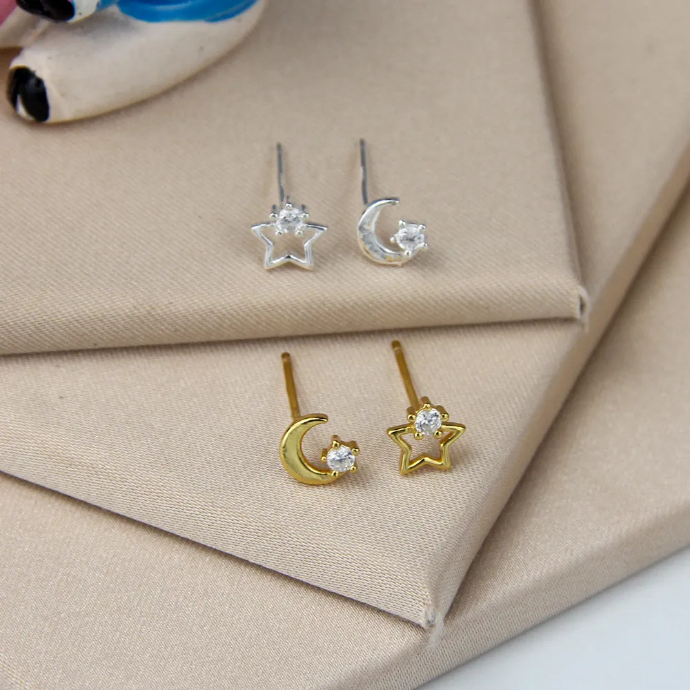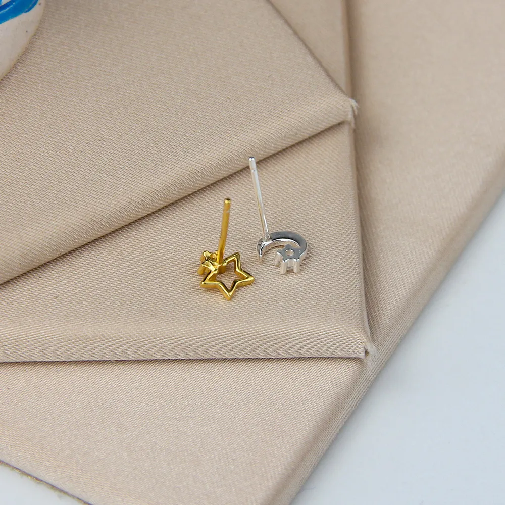 Color: star and moon ear studs (silver), star and moon ear studs (gold)