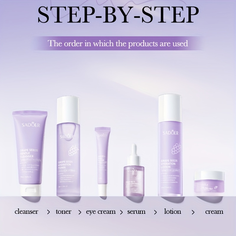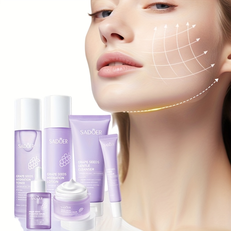Sadoer Grape Seeds Multi Effect Moisturizing 6-Piece Set Complete Hydration and Skin Care