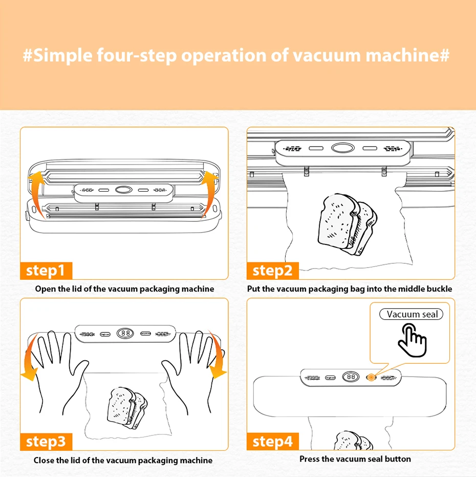 - Start the Sealing Process: Press the start button to begin vacuuming and then sealing the bag automatically.